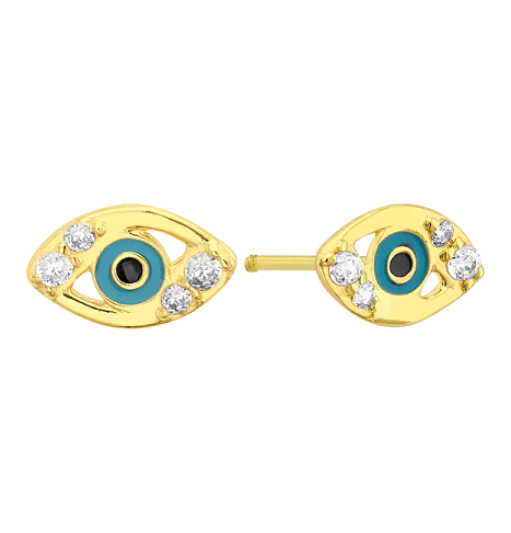 OroTrue 14K Yellow Gold Turkish eye with cz and enamel Screw Back Earrings