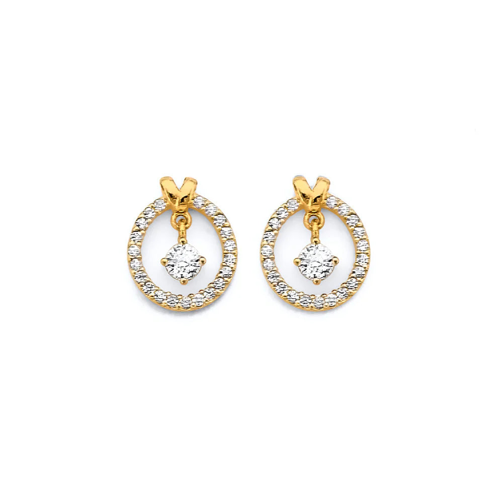 14K Yellow Gold CZ Hanging Push Back Earrings