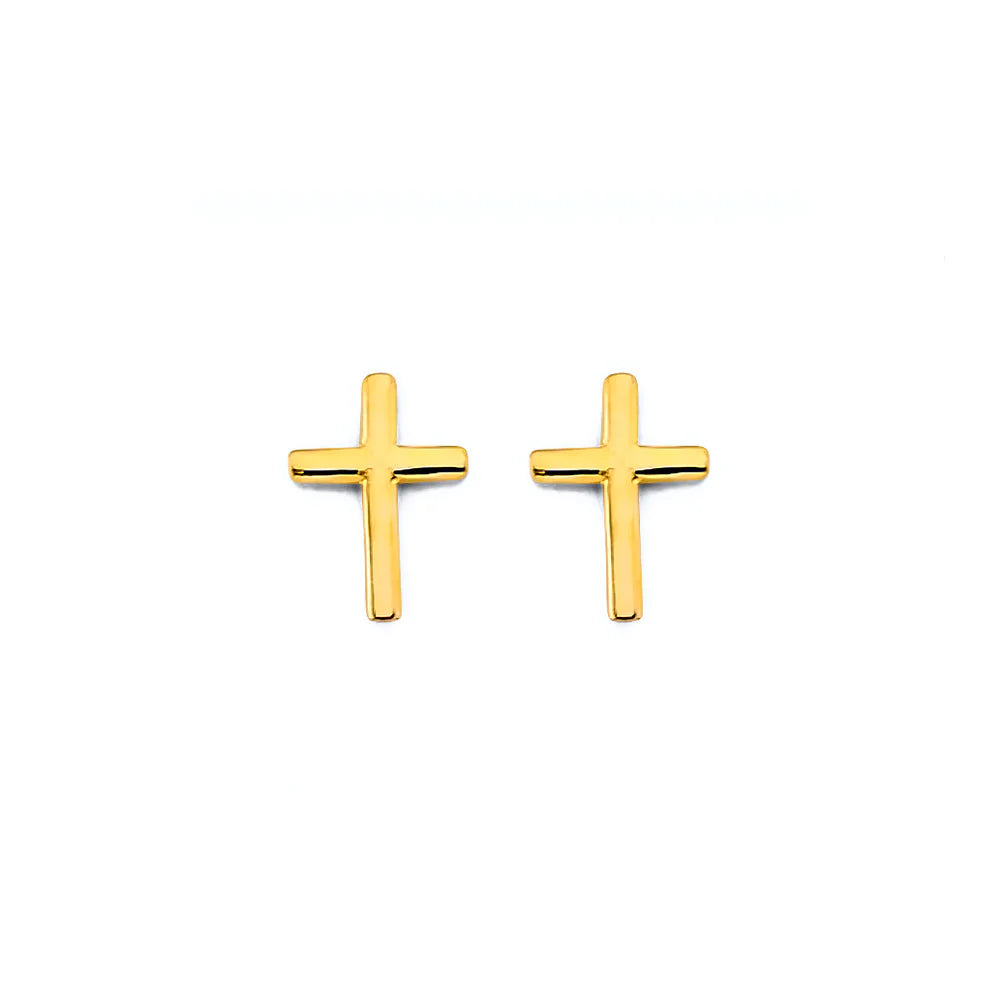 14K Yellow Gold Plain Cross Push Back Earrings