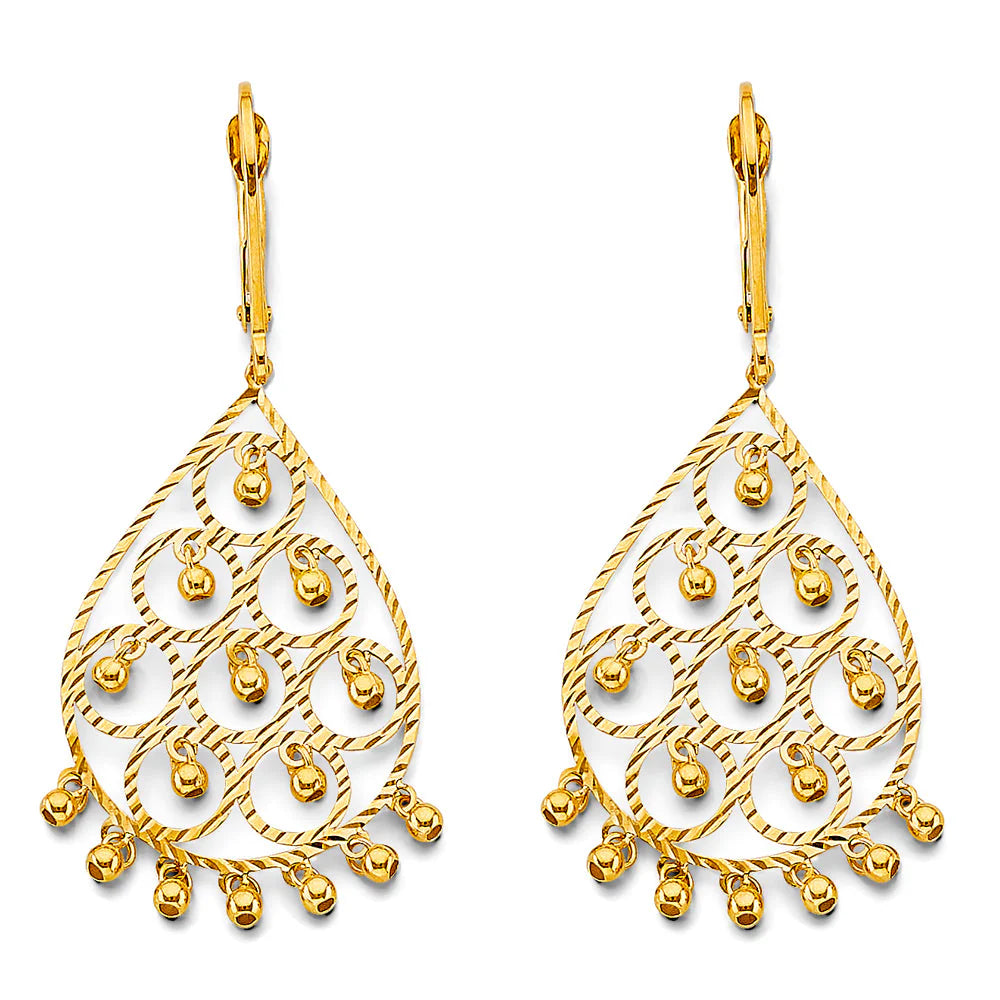 14K Yellow Gold DC Chandelier Hanging Earrings