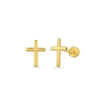 OroTrue 14K Yellow Gold Cross Screw Back Stud Earring