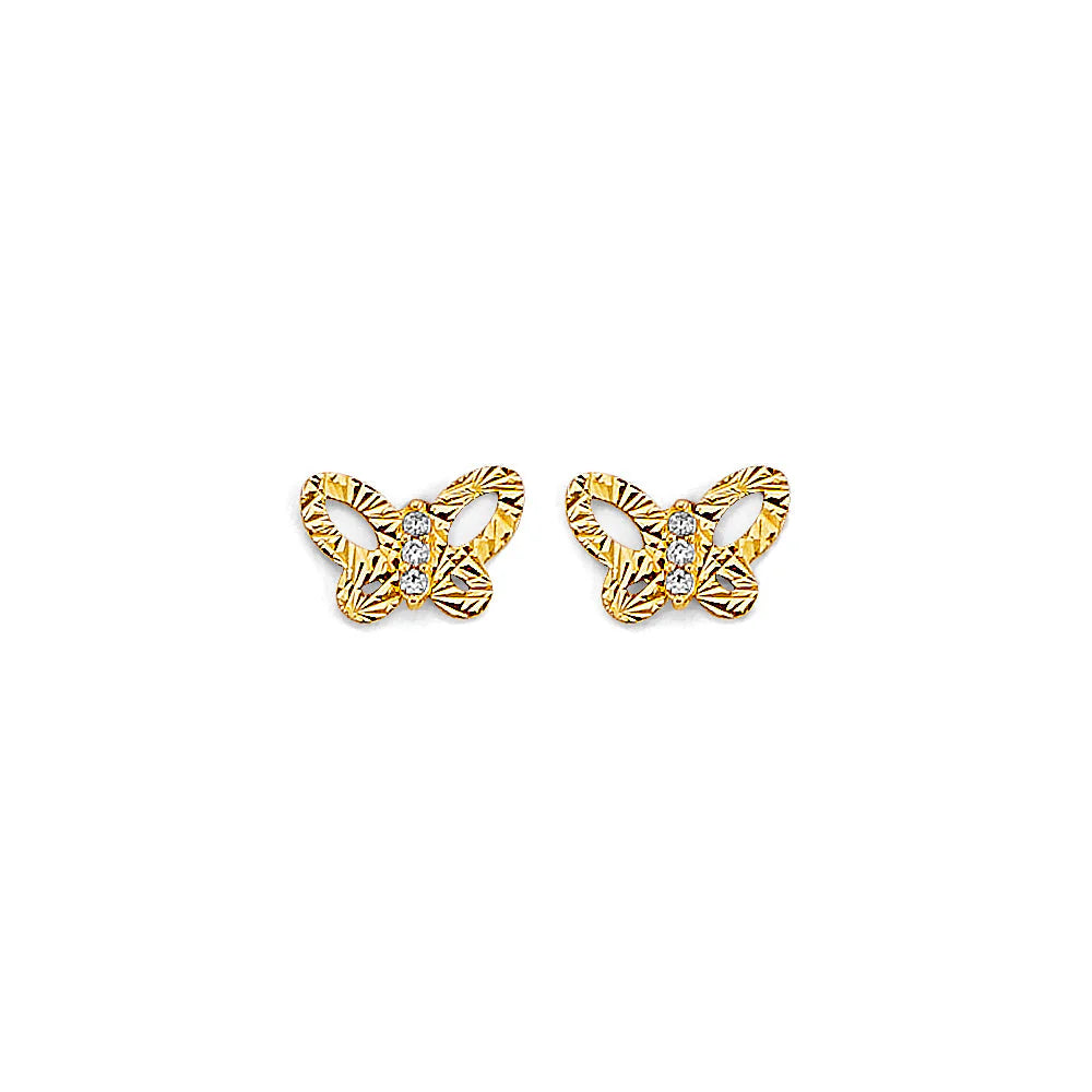 14K Yellow Gold CZ DC Butterfly Stud Earrings With Screw Back