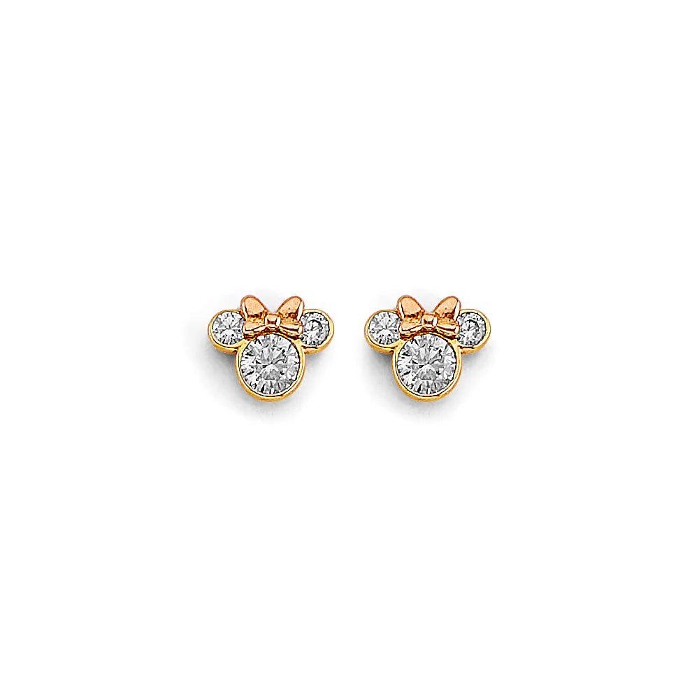 14K Two Tone Gold Mouse CZ Stud Earrings With Screw Back