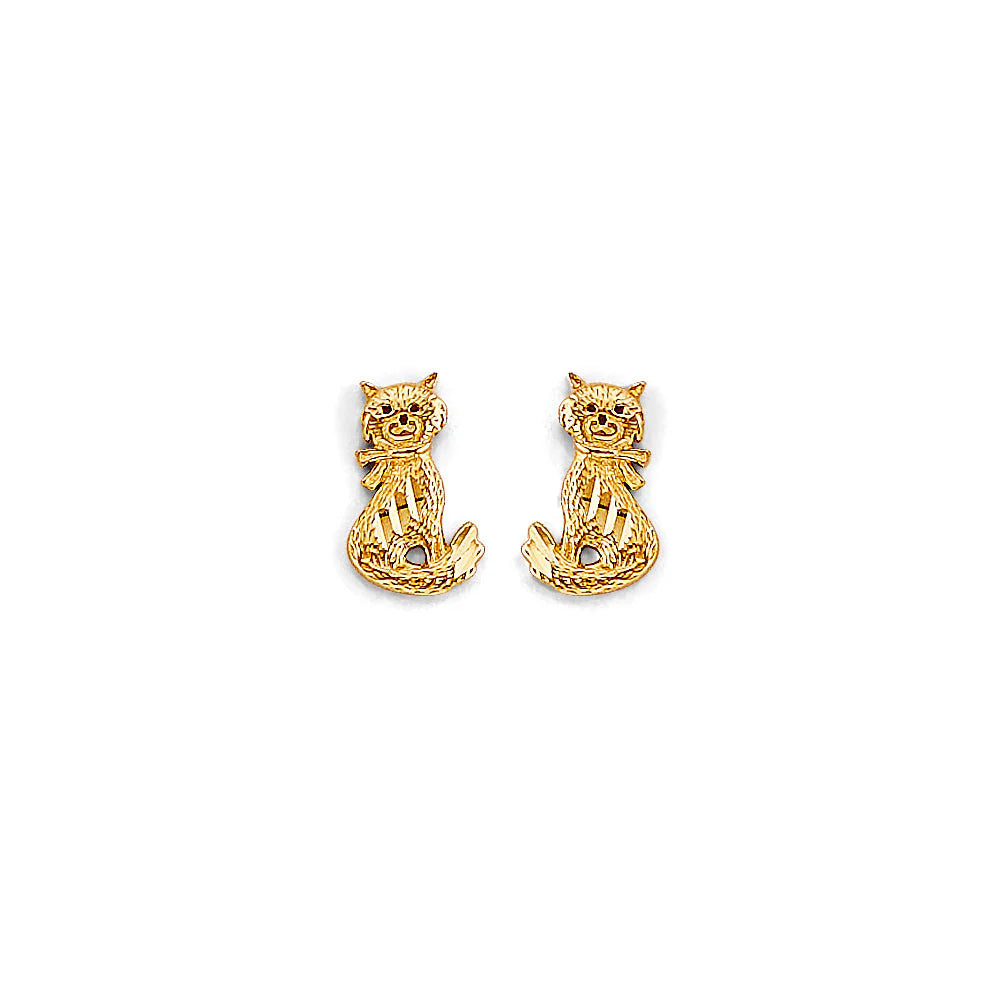 14K Yellow Gold Cat CZ Stud Earrings With Screw Back