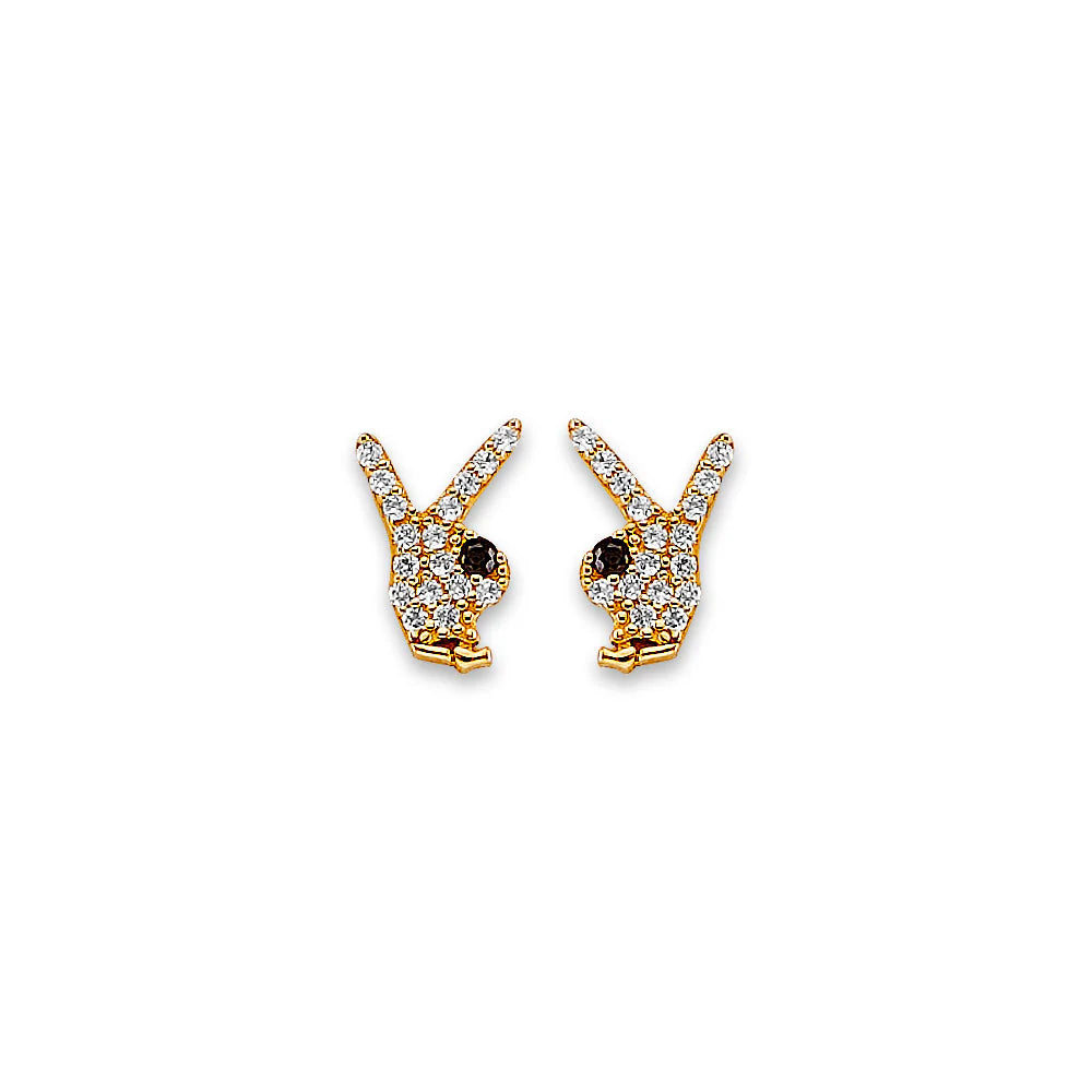 14K Yellow Gold Rabbit CZ Stud Earrings With Screw Back