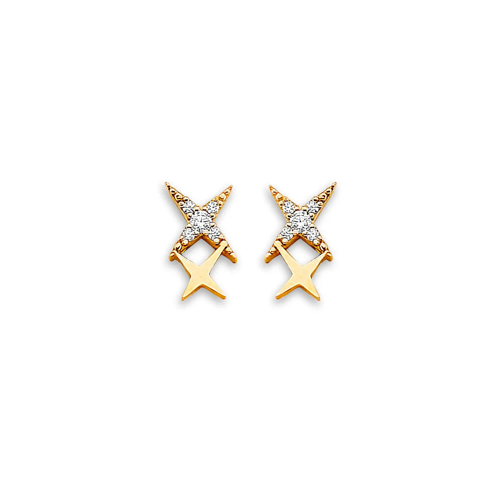 14K Yellow Gold Star CZ Stud Earrings With Screw Back