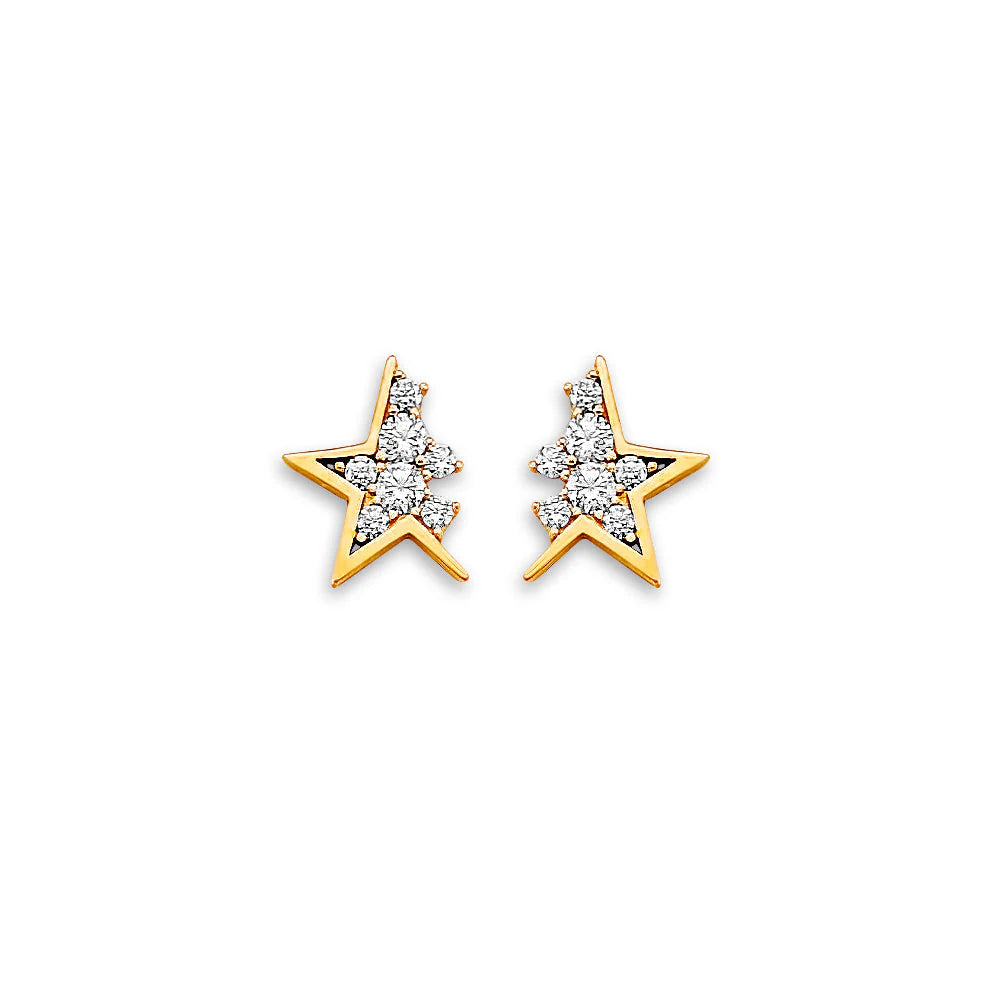 14K Yellow Gold CZ Star Stud Earrings With Screw Back