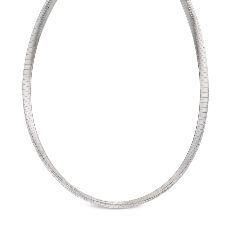 Sterling Silver Italian Solid Flat Omega Chain Luxurious Nickel Free Necklace with Lobster Claw Clasp Closure