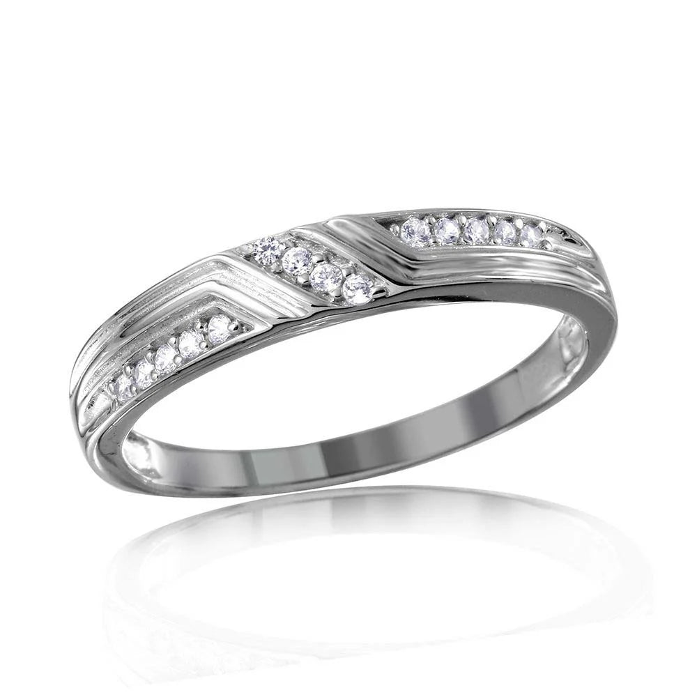 Mens Sterling Silver Rhodium Plated CZ Design Ring