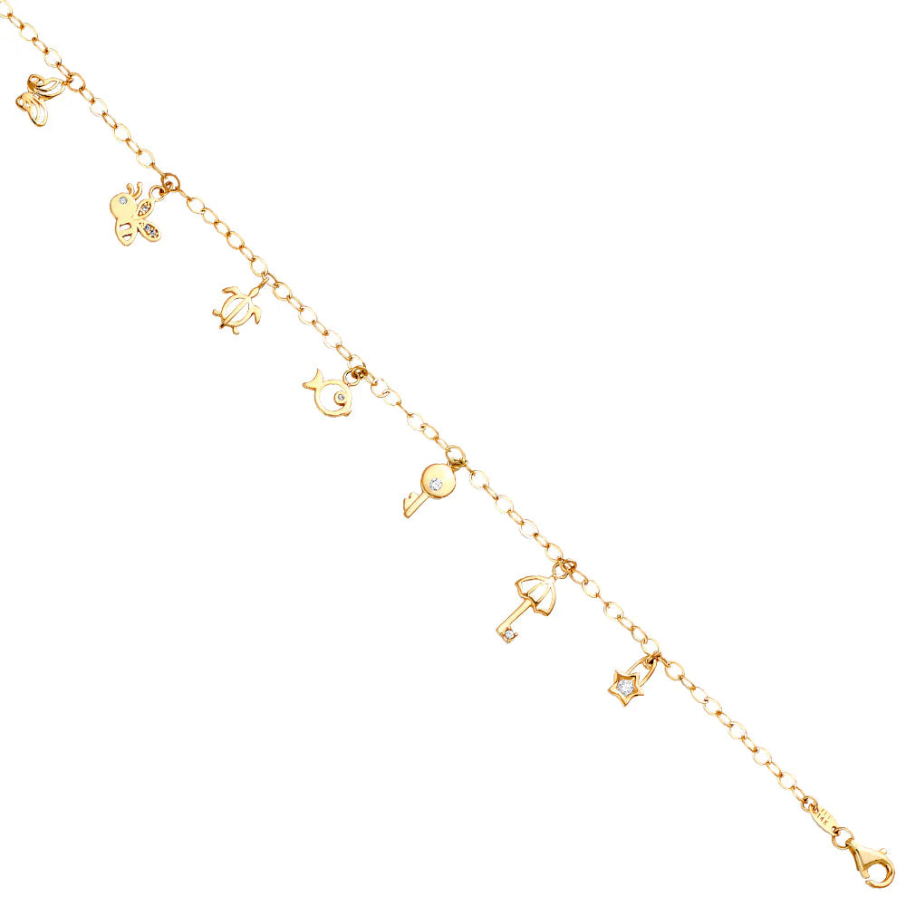 14K Yellow Gold Assorted Nature Hanging Bracelet And Anklet