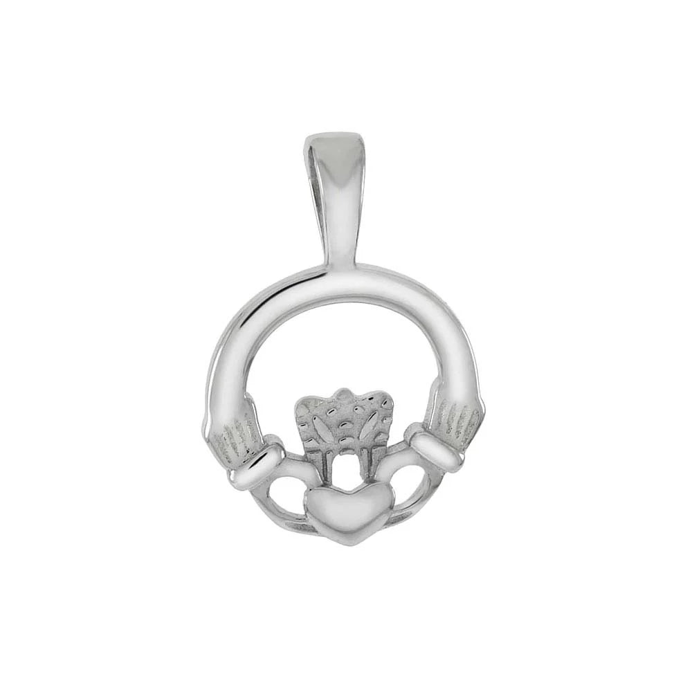Sterling Silver Claddagh Rhodium PendantAnd Diameter 15.5mm