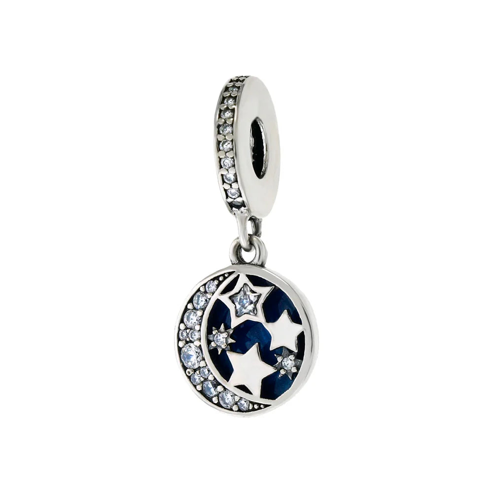 Sterling Silver STAR and Moon CZ Slider Charm Pendant