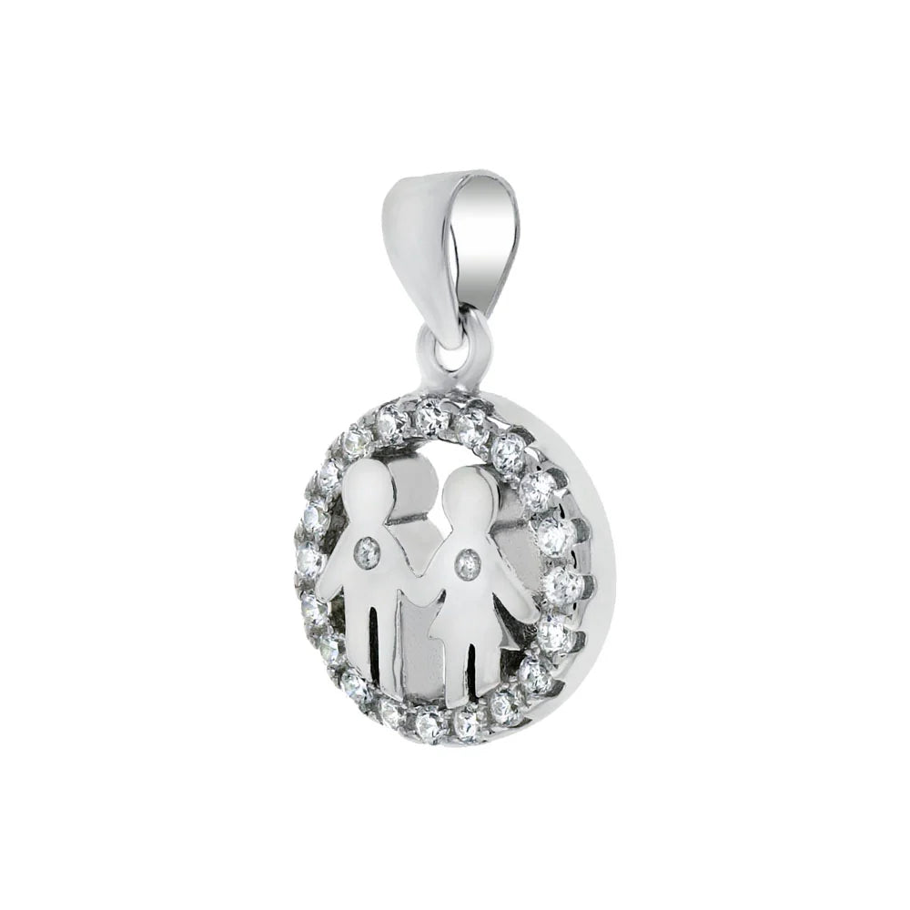 Sterling Silver Circle Of Love Boy And Girl Cubic Zirconia Pendant