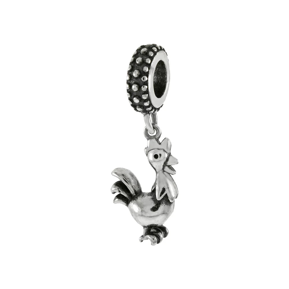Sterling Silver Rooster Charm Oxidized Slider Pendant