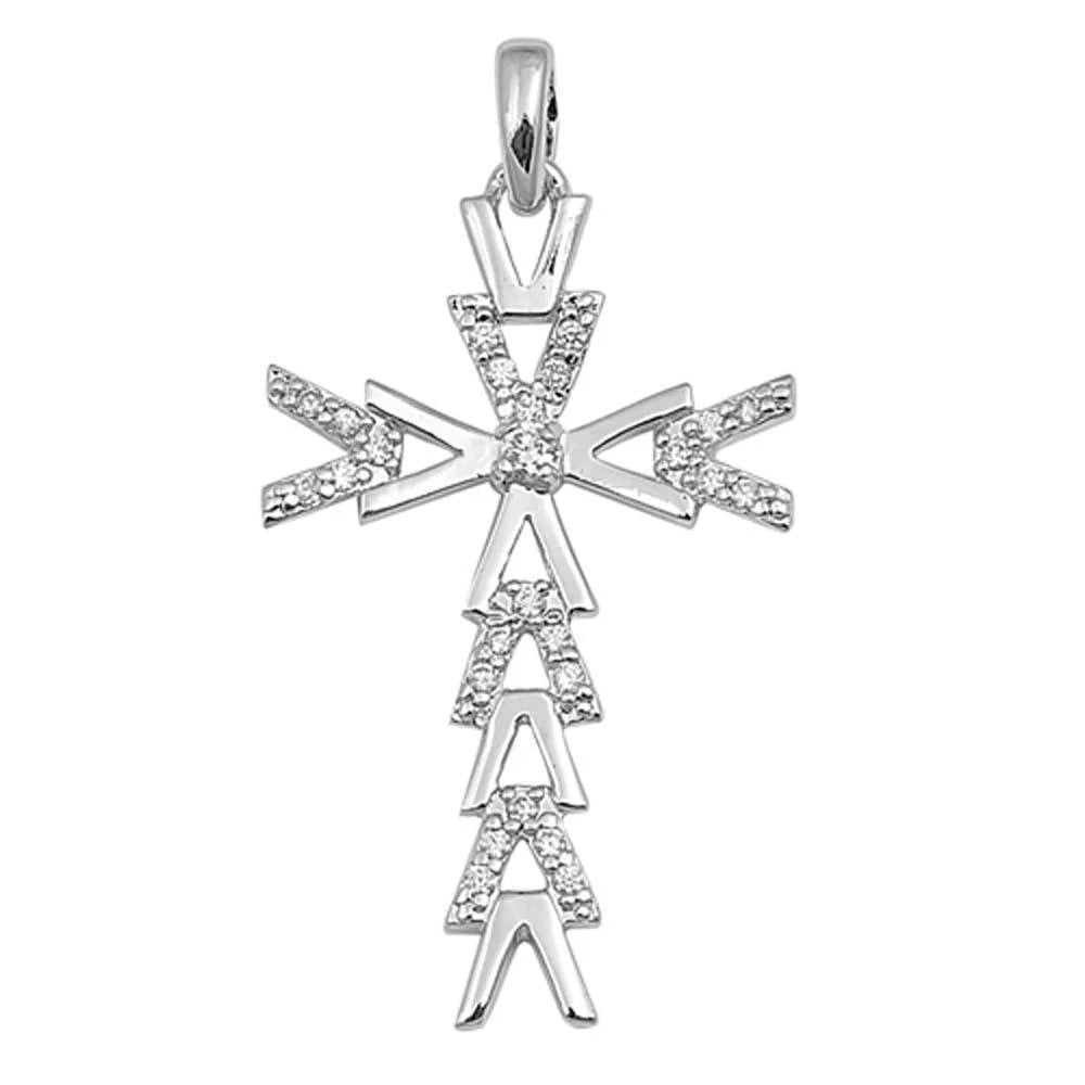 Sterling Silver V Shaped Cubic Zirconia Cross PendantAnd Pendant Height 35 mm