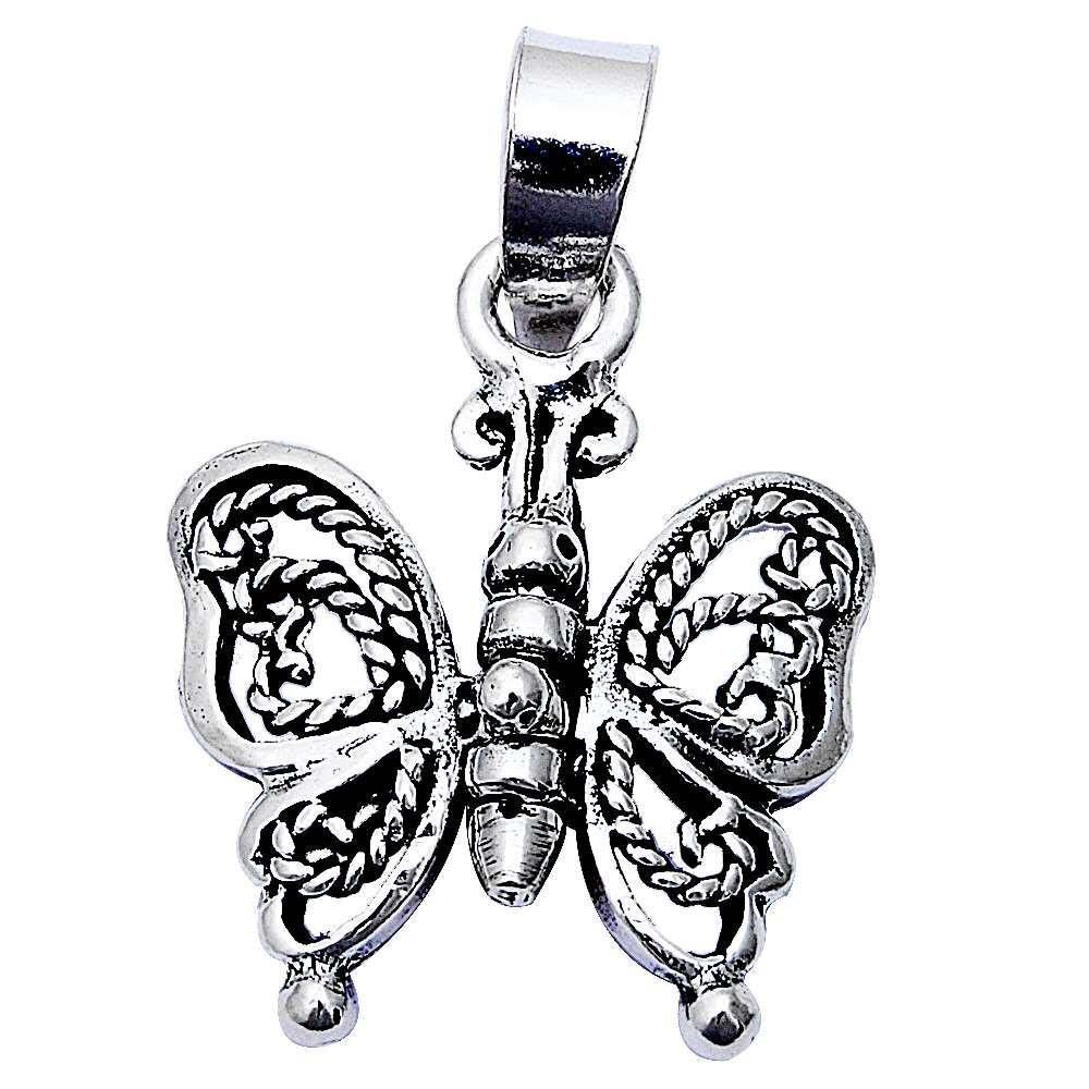 Sterling Silver Antique Filigree Flexible Butterfly Pendant 1 LongAnd Charm Width 14.5mm