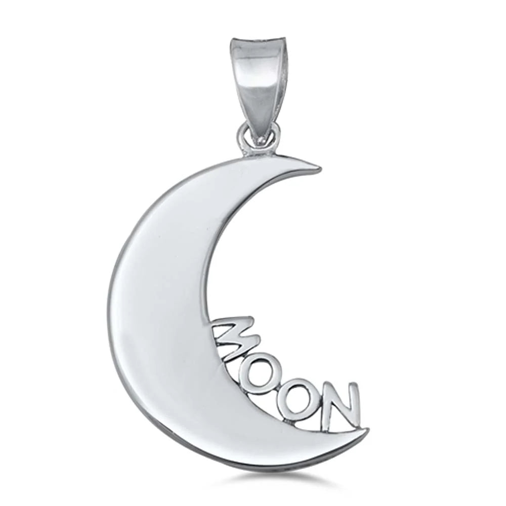Sterling Silver Rhodium Plated Moon Plain Pendant