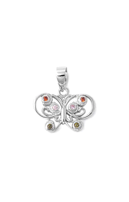 Sterling Silver Fancy Butterfly Pendant with Multicolored Simulated Diamonds Design