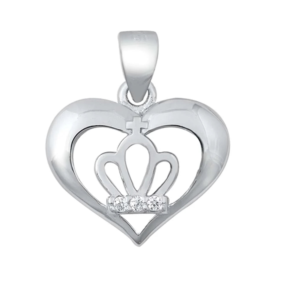 Sterling Silver Crown in Heart Clear CZ Pendant