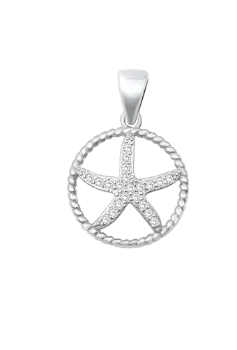Sterling Silver CZ Starfish Pendant--Height 14mm