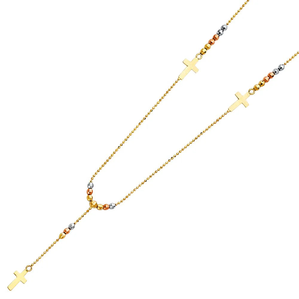 14K Tricolor 2.5mm Beads Ball Rosary Necklace