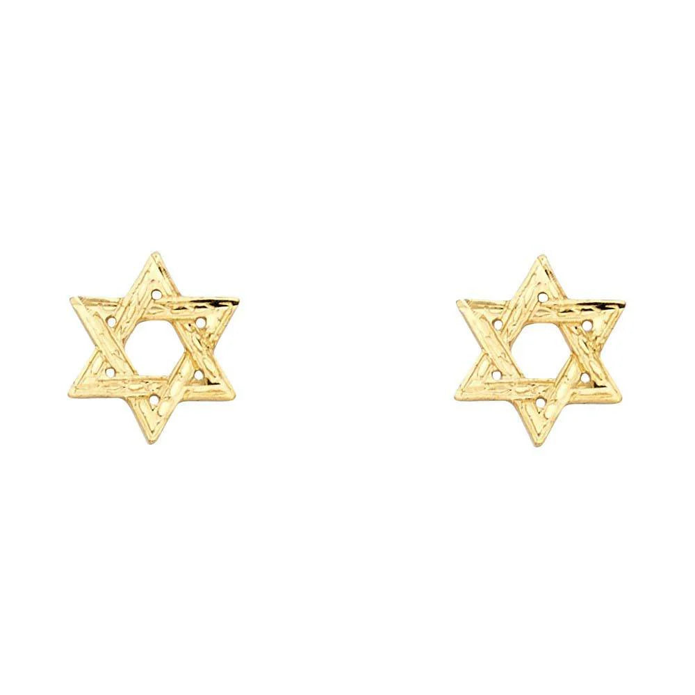 14K Yellow Gold 10mm Jewish Star Post Earrings