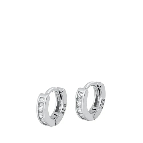 Sterling Silver Rhodium Plated 1.5mm Invisible Round Huggie Clear CZ Earrings-10mm