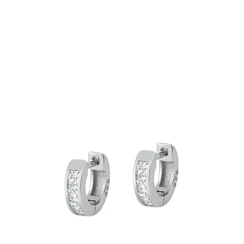 Sterling Silver Rhodium Plated 3mm Invisible Huggie Clear CZ Earrings-10mm