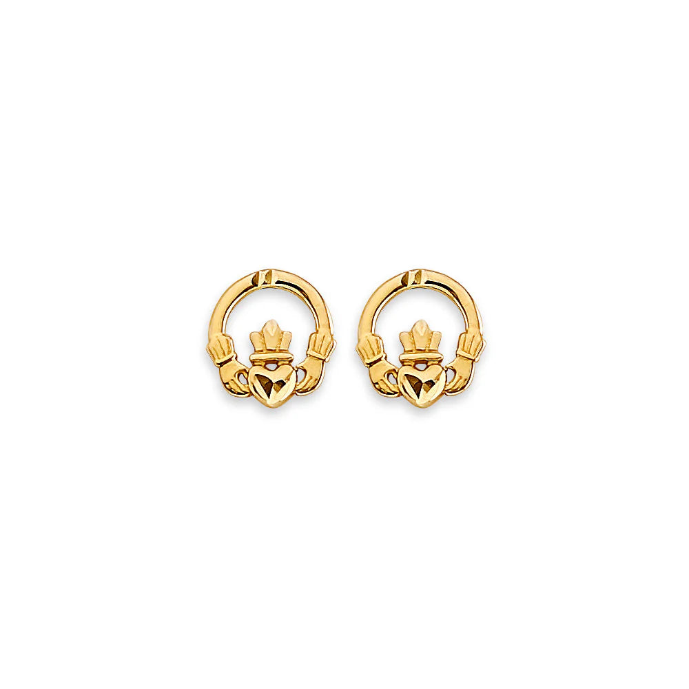 14K Yellow Gold Claddagh Stud Earrings With Screw Back